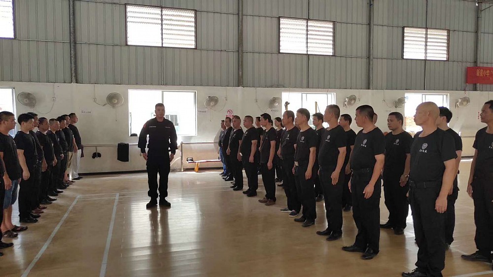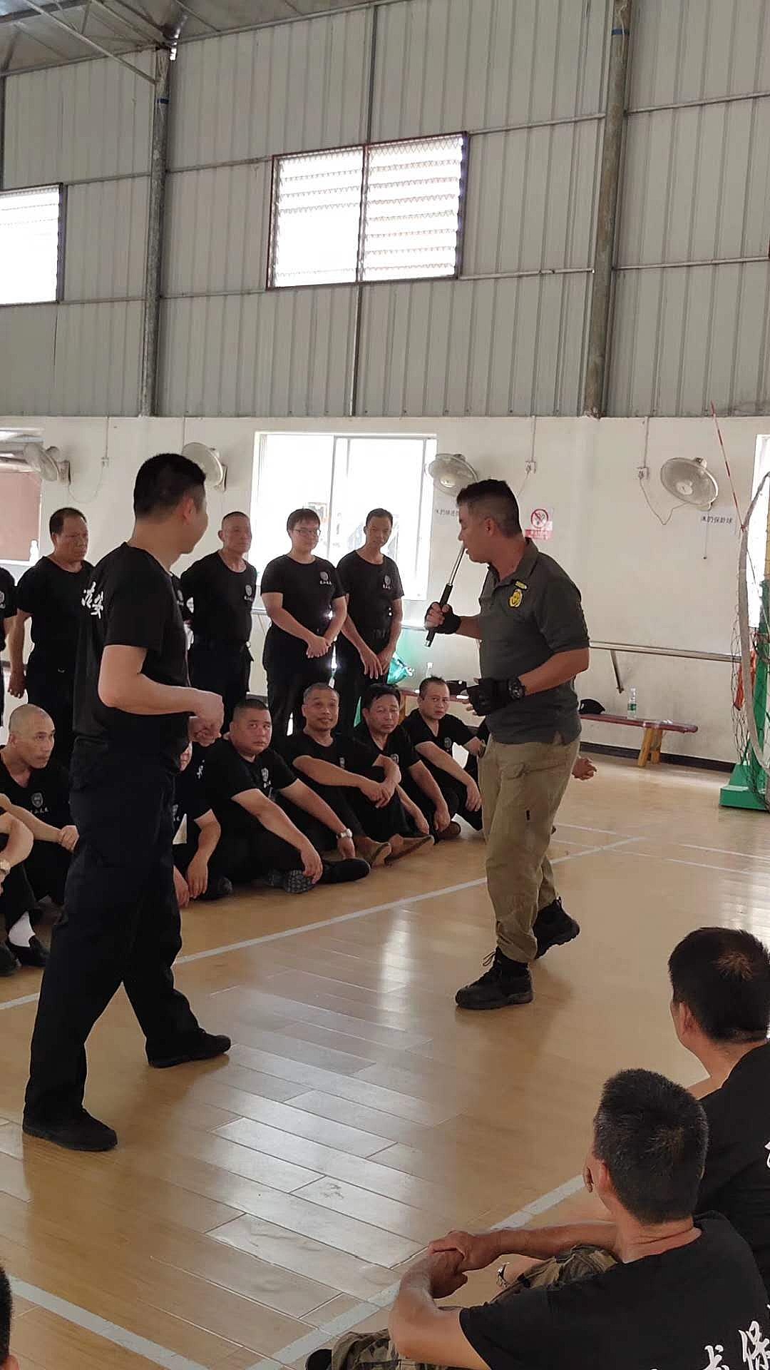 李旭暉大隊(duì)長(左一)、粟寧萬經(jīng)理(右一)在為保安員授課