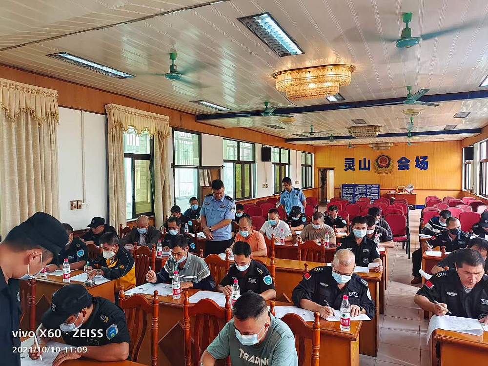 為進(jìn)一步提高保安員的綜合業(yè)務(wù)素質(zhì),近期,海龍集團(tuán)旗下天龍保安靈山分公司在靈山縣公安局治安大隊(duì)四樓會(huì)議室舉辦2021年度保安員第二期業(yè)務(wù)知識(shí)培訓(xùn)。本次培訓(xùn)由廣西靈山縣公安局治安大隊(duì)大隊(duì)長李旭暉及廣西天龍保安服務(wù)有限公司靈山分公司經(jīng)理粟寧萬主講,公司全體保安人員參加培訓(xùn)和保安證考試。
