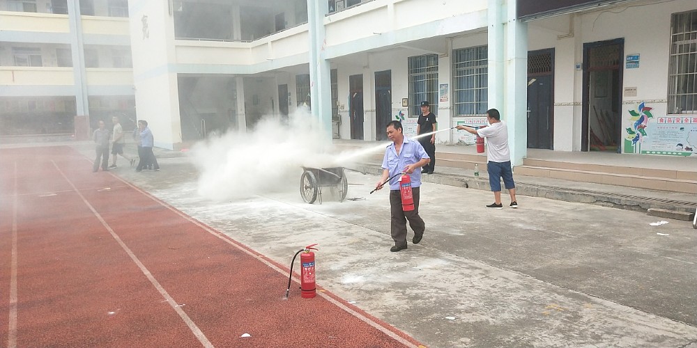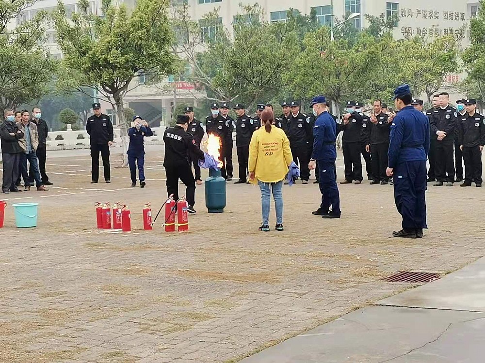保安員在學(xué)習(xí)如何正確使用消防器械