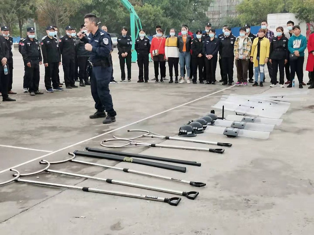 李旭暉大隊(duì)長為保安員講解保安器械的使用與操作要領(lǐng)、列隊(duì)訓(xùn)練等