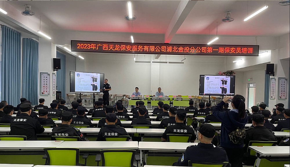 為進一步提高天龍保安在業界的競爭力,全面提升保安人員業務素質和專業水平,進一步明確其工作職責,切實增強保安人員應對緊急突發事件的處置能力,2023年5月13日,海龍集團旗下廣西天龍保安服務有限公司浦北金投分公司在浦北縣第八小學開展2023年第一期保安培訓。天龍保安浦北金投分公司在職保安員及其他單位保安員約130人接受了培訓。