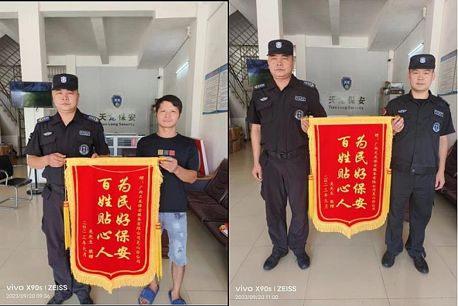 2023年8月3日晚23時左右,海龍集團旗下天龍保安靈山分公司兩名保安員在日常保安工作巡查途中,在經過靈山縣江南路梓崇路段時,發現有人橫躺在路邊,頭部已沒入花圃中,周圍有散落機動車零件,他們馬上意識到是發生了交通事故,立刻上前查看。發現傷者躺在路邊,意識模糊,情況比較嚴重。兩名同志立即按照天龍保安公司日常緊急事件應急處置方案進行處理,一邊詢問傷者受傷的情況及家屬聯系方式并通知家屬,一邊聯系“120”和交警前來處理,同時做好現場秩序維護和交通疏導管理,避免再次發生事故對傷者造成二次傷害。